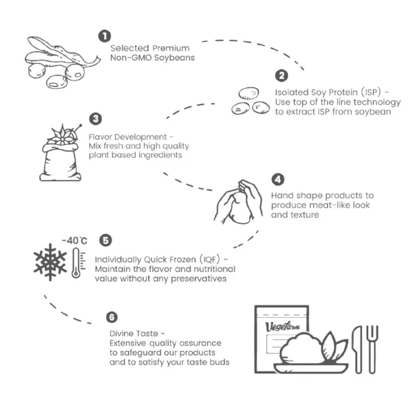 Today, we offer more than 300 varieties of products, exported to 18 countries around the world. VegeFarm has grown into the largest global frozen vegetarian food manufacturer, providing a wide range of options to meet diverse tastes and needs. We proudly stand by our motto: “Solid quality, rich flavor, versatility, and irresistible aroma.” Every product we make is crafted with uncompromising quality, freshness, excellent texture, and unbeatable taste.